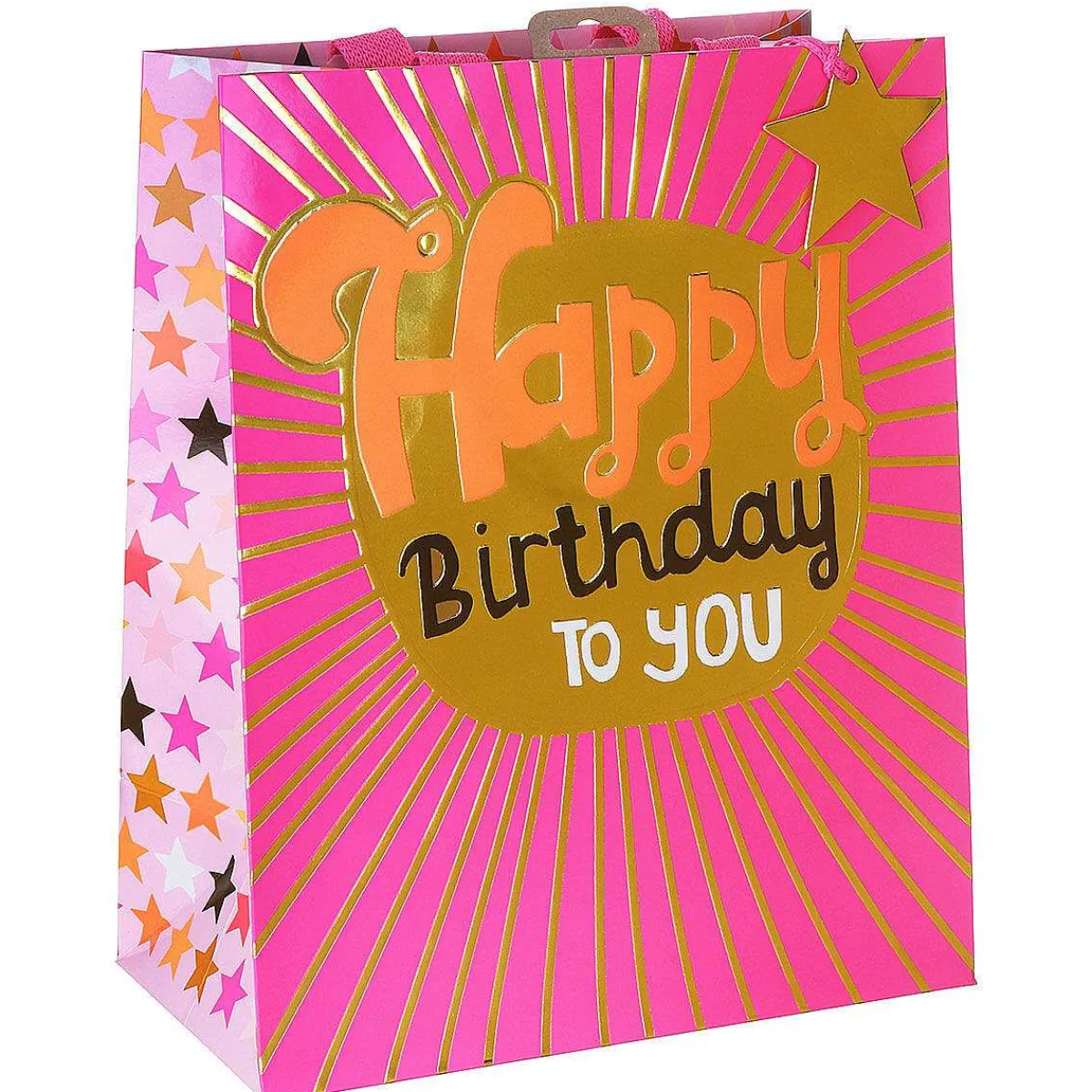 Give A Gift In A Stylish Bag From Glick! This Stunning Gift Bag Is Adorned With Shimmering Golden Sunrays Bursting From A Central Oval. Inside The Oval Is The Text ‘Happy Birthday To You’. Set On A Bright Pink Background Which Creates A Fun And Exciting Look.