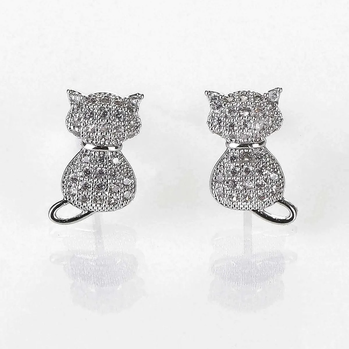 Designed As Stud Earrings, Each One Features A Silver Cat, Sat With Its Tail Curled Out To The Side And Its Ears Pricked. The Cats Bodies Are Covered In Pavé Set Cz Crystals To Add A Touch Of Sparkle To These Adorable Earrings.