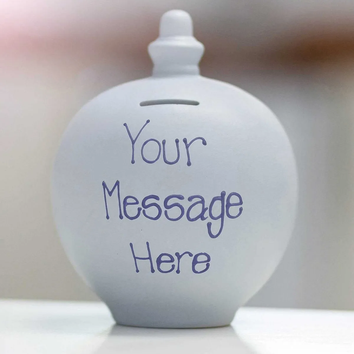 Whether You Are Saving For A Big Birthday, A Safari Adventure, A Relaxing Beachside Holiday Or Just Want Somewhere To Squirrel Away Your Loose Change, This Brilliant Personalisable Money Pot Is The Perfect Way To Ensure The Pounds Take Care Of Themselves! The Soft Grey Colour Is The Perfect Backdrop For Your Chosen Personalisation Which Can Appear On Both The Front And The Back Of The Pot In A Choice Of Coloured Writing.