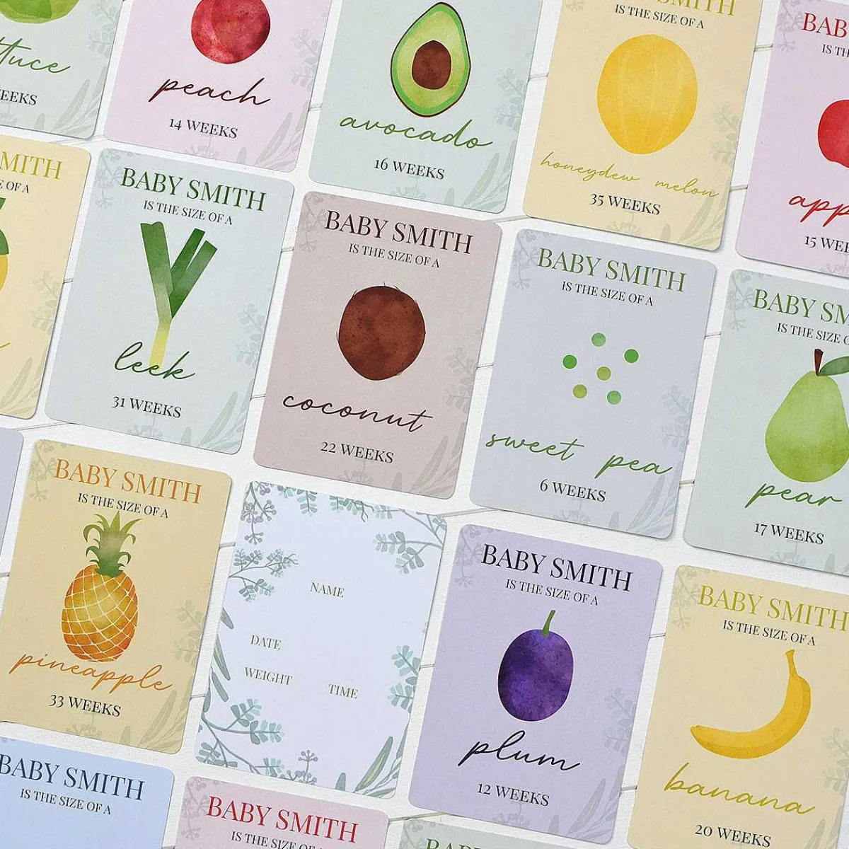 Each Card Features A Fruit Or Vegetable Design To Show How Big You Baby Is At Which Stage.
