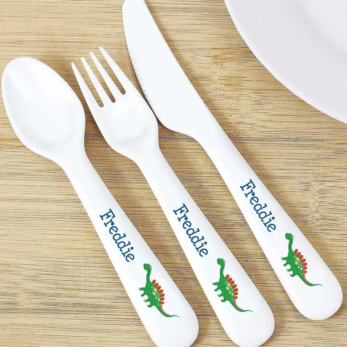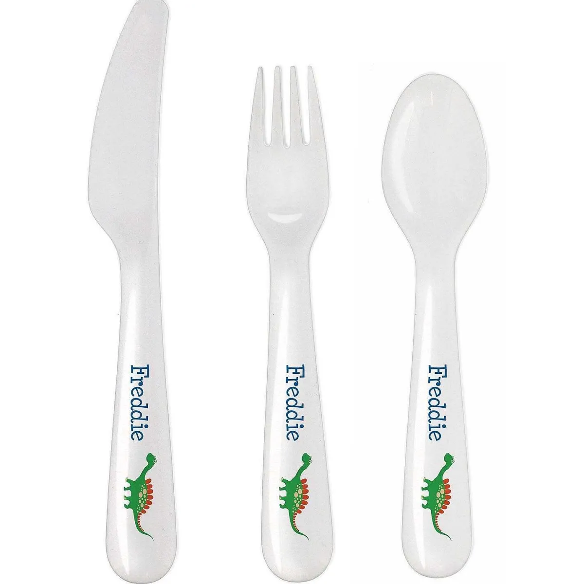 Personalised Dinosaur 3 Piece Plastic Cutlery Set