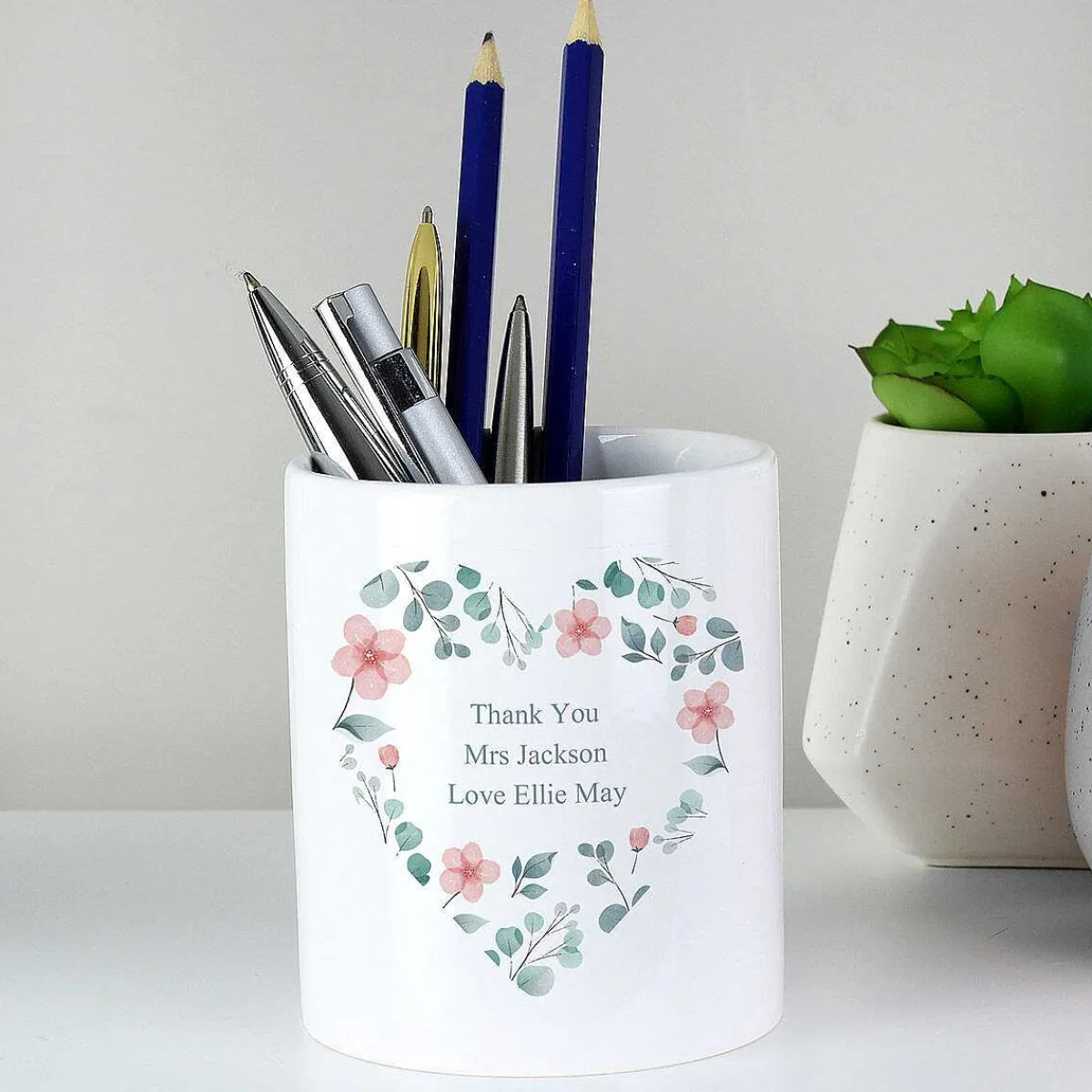 Perfect For Housing A Small Plant, Storing Stationery, Makeup Brushes, And Other Trinkets, This Personalised Floral Heart Ceramic Storage Pot Would Make A Fabulous Gift For Someone Special. It’S Ideal For Birthdays, Valentine’S Day, Mother’s Day, And Grandparents.