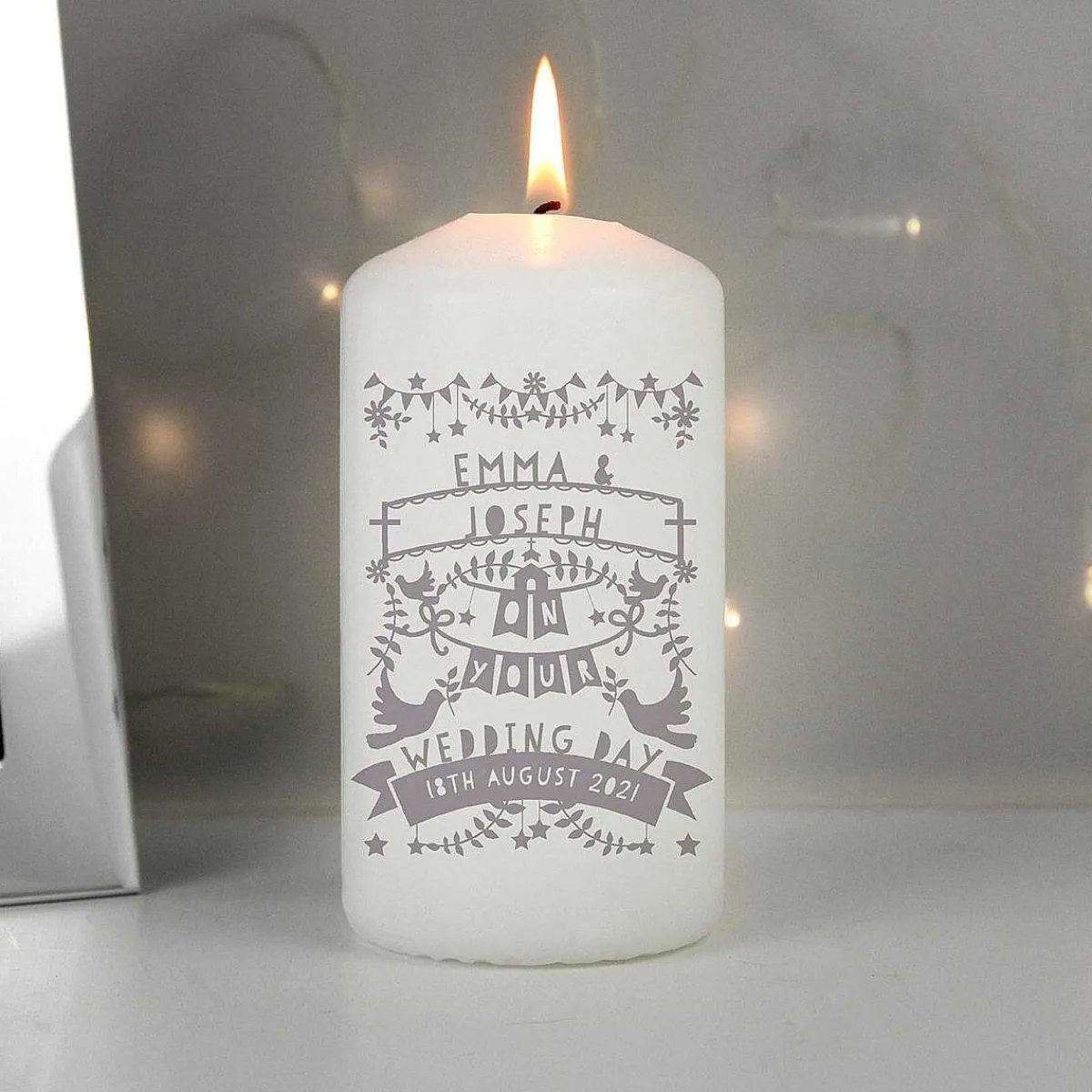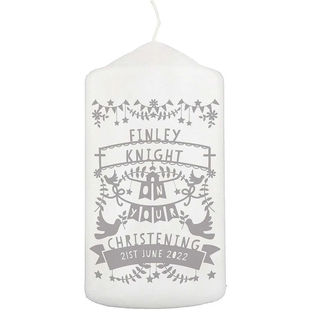 Personalised Grey Papercut Style Pillar Candle