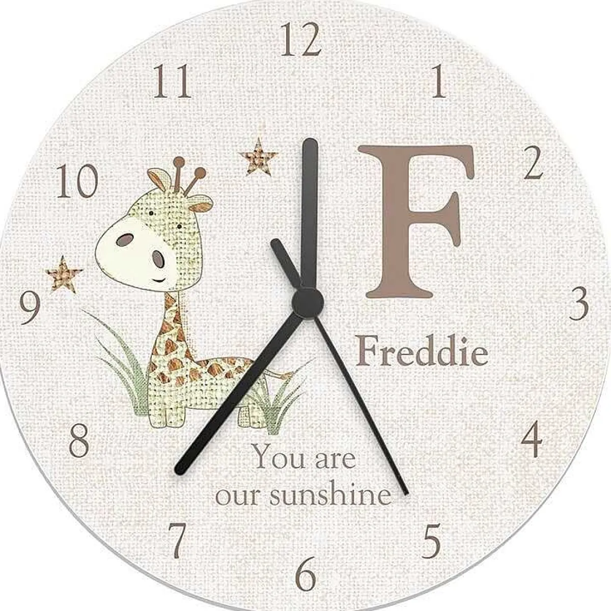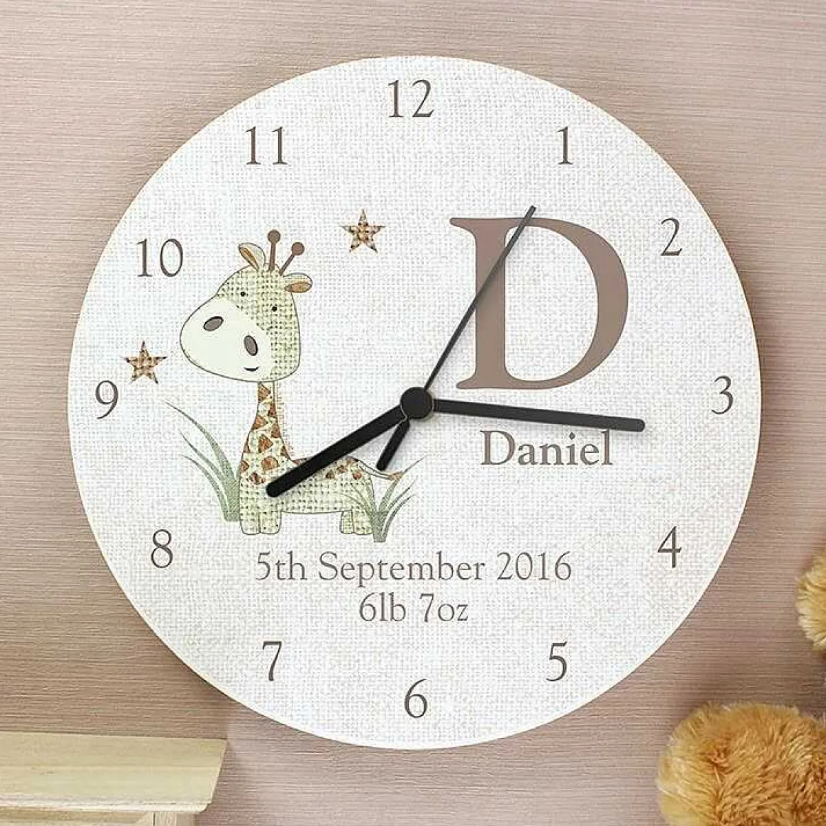 Add A Rustic Touch To Any Child’S Bedroom Or Playroom With This Adorable Personalised Hessian Giraffe Wooden Clock, The Perfect Piece Of Décor To Commemorate You Child’S Birth Date, Christening Or Other Special Occasion.