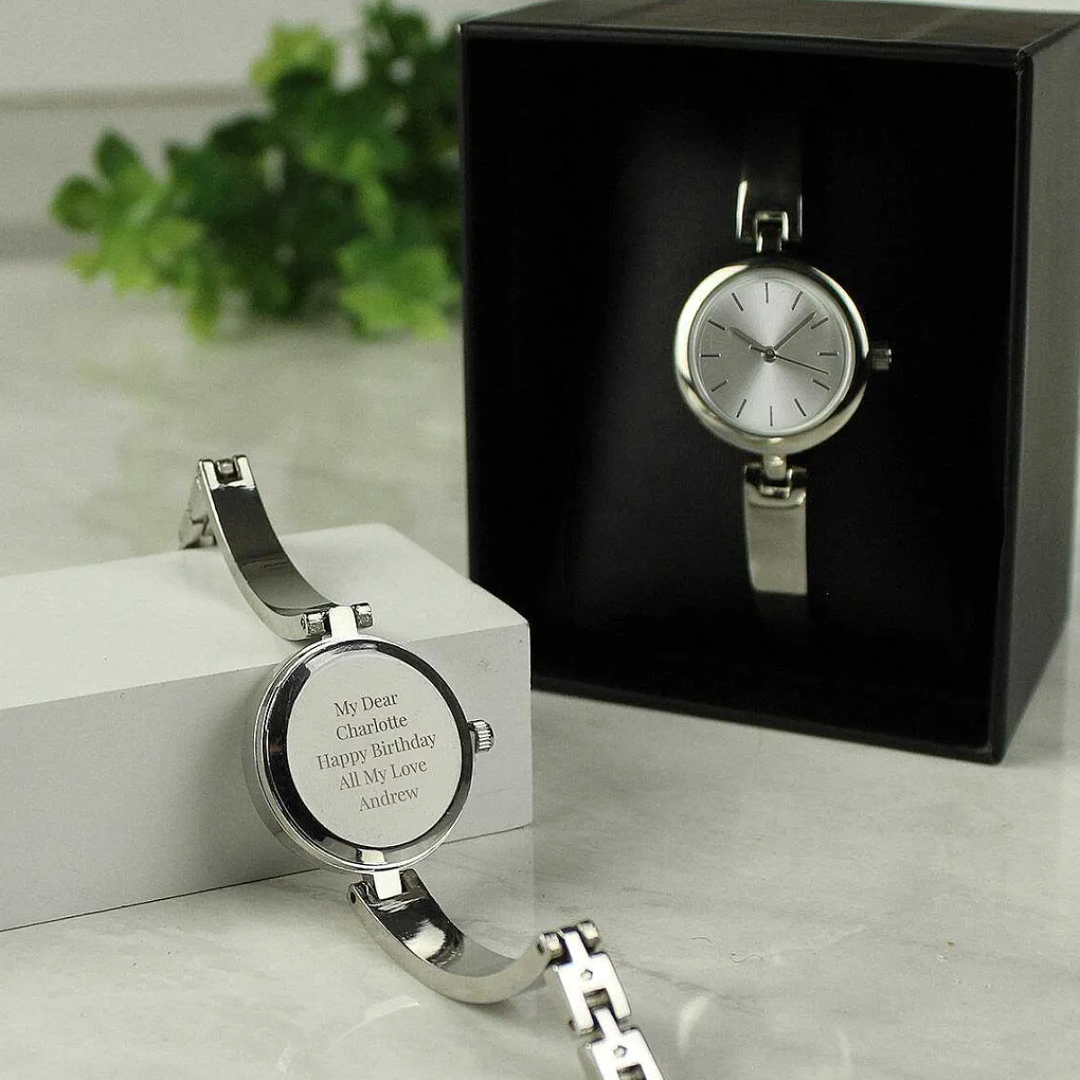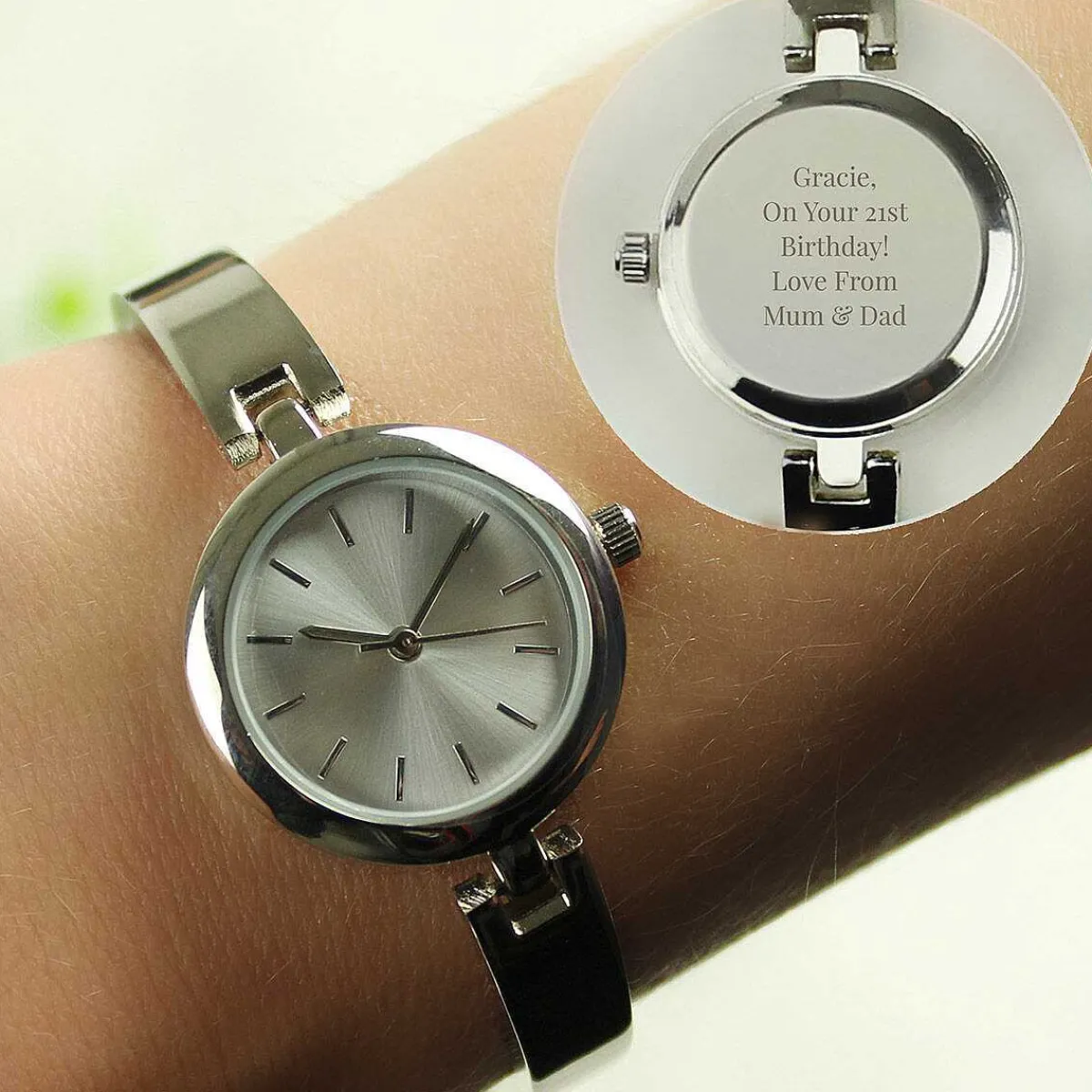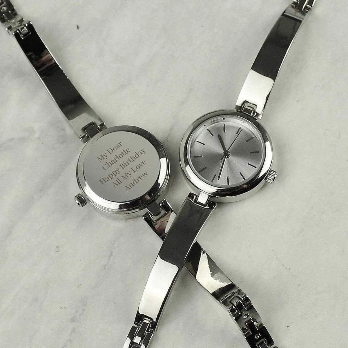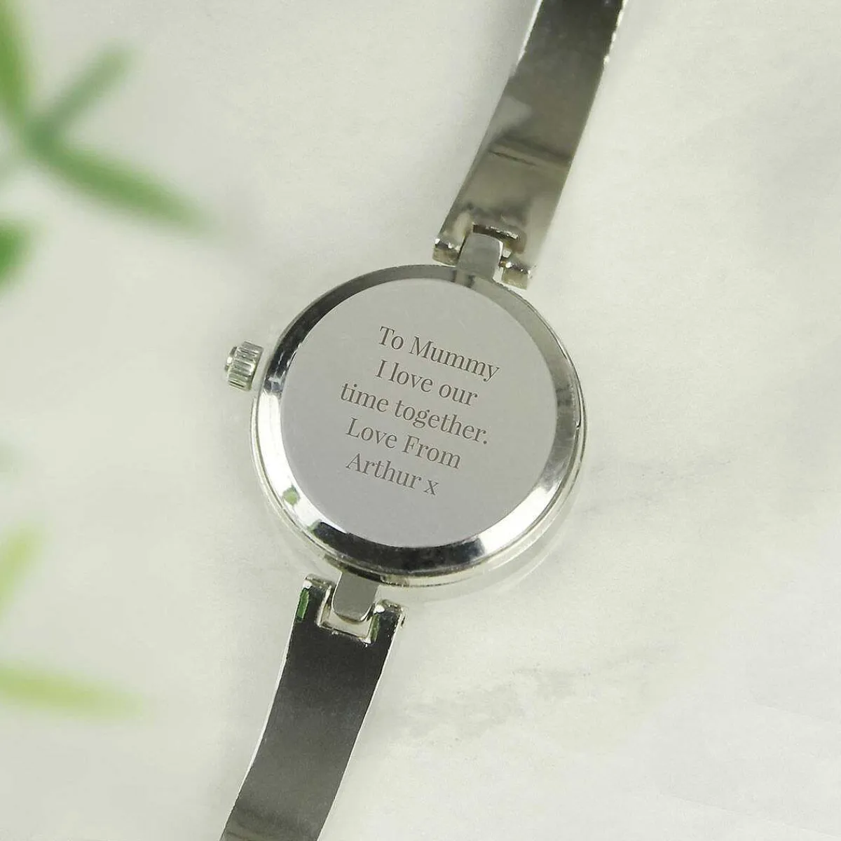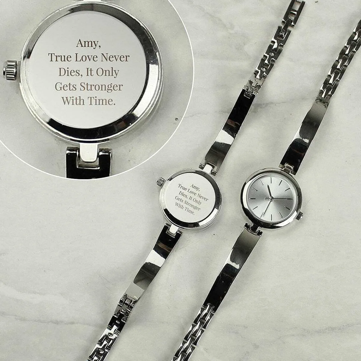 This Elegant Personalised Silver Ladies Watch With A Silver Slider Clasp Is A Perfect Gift For That Special Someone.