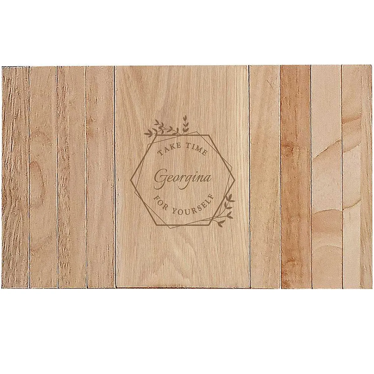 This Adjustable Wooden Tray Can Be Personalised With A Name Up To 12 Characters Long, For That Individual Touch. The Tray Is Decorated With A Geometric Border, Along With The Words, ‘Take Time For Yourself’.