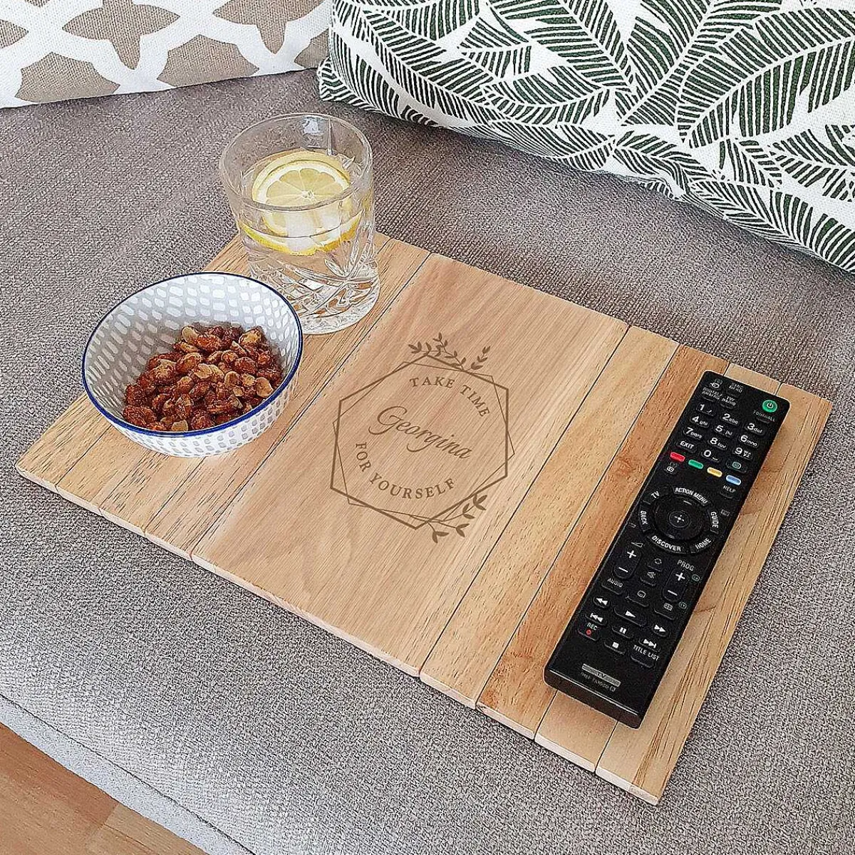 Personalised ‘Take Time For Yourself’ Wooden Sofa Tray