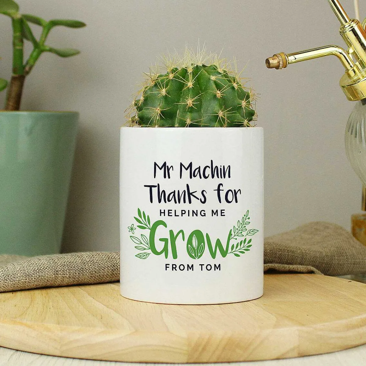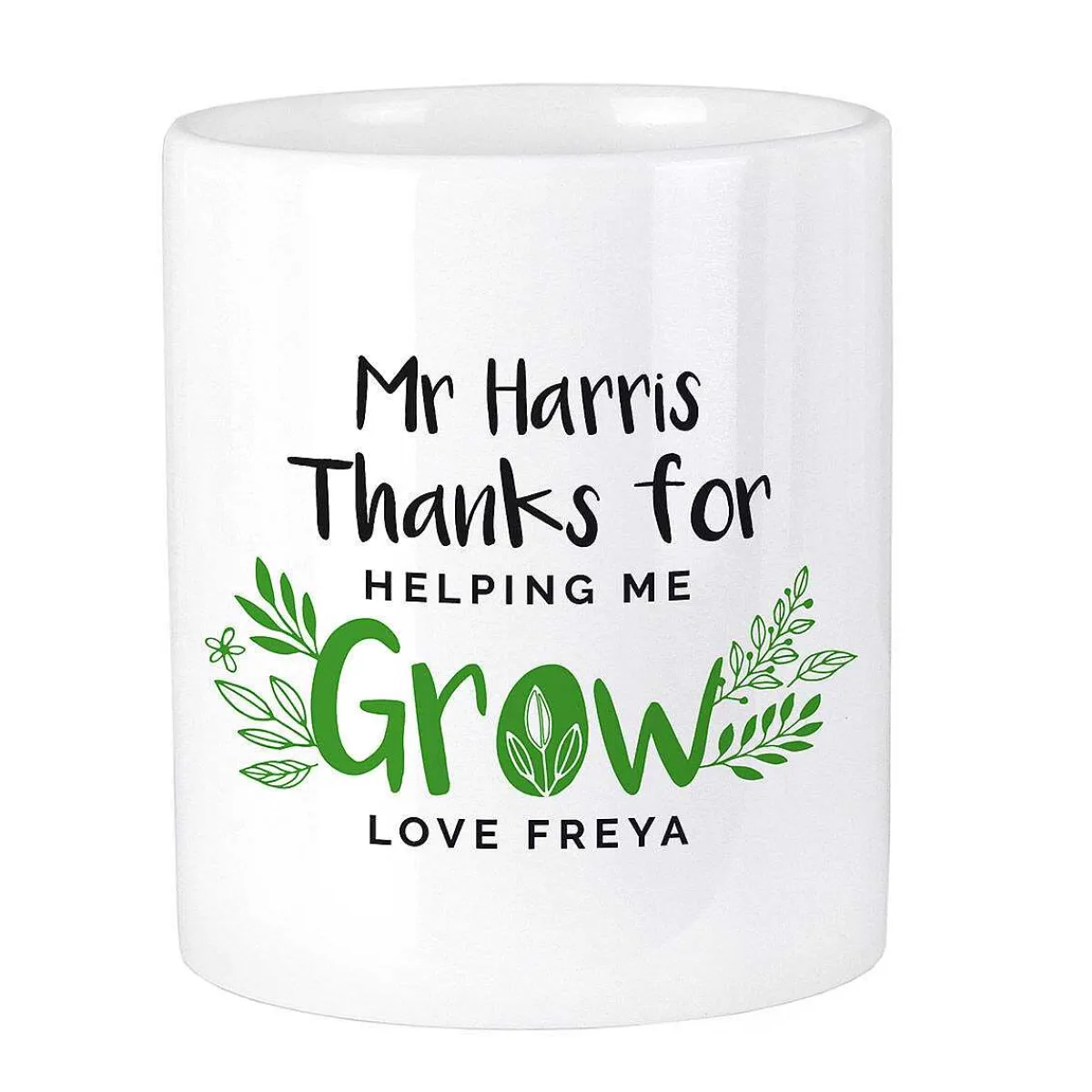 Perfect For Housing A Small Plant, Storing Stationery, And Other Trinkets, This Personalised ‘Thanks For Helping Me Grow’ Ceramic Storage Pot Would Make A Fabulous Gift To Say ‘Thank You’ To Your Favourite Teacher Or Childminder!