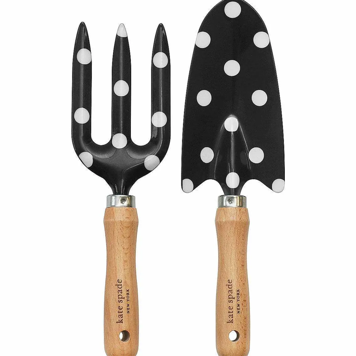 Made With A Wooden Handle, This Fork And Trowel Set Feature A Black Surface With White Polka Dots Displayed Across The Tools, Complete With The Kate Spade New York Logo Engraved Onto The Handle. They Are Perfect For All Your Gardening Needs Such As Digging Up New Spaces For Plants And Removing Weeds!