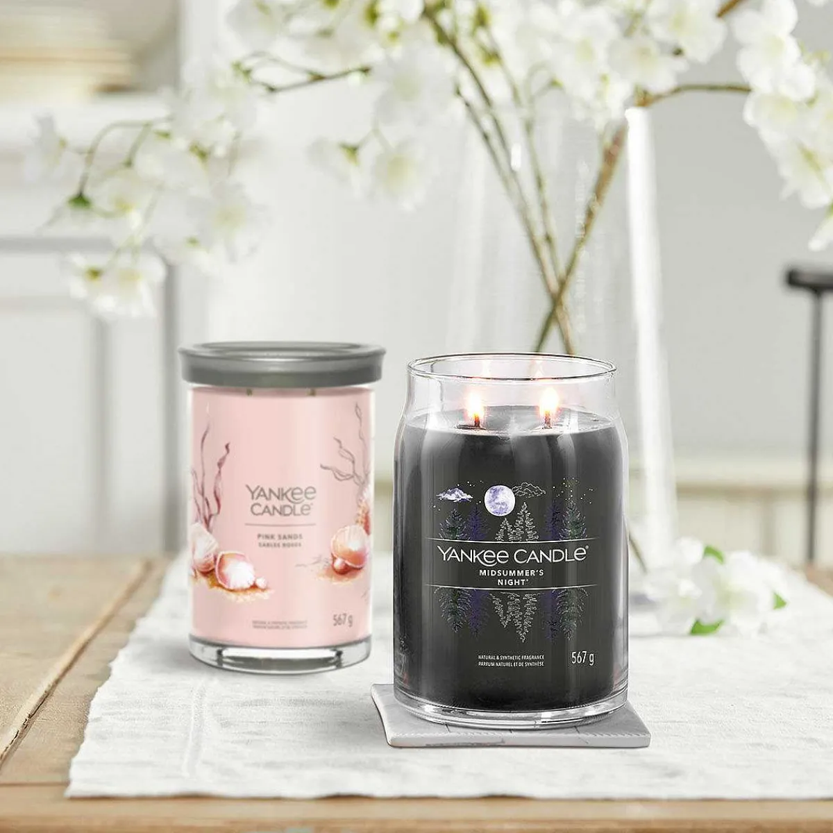 Escape To An Exotic Island With This Gorgeous Pink Sands Aroma From Yankee Candle. This Signature Large Tumbler Is A Sleek Glass Vessel With Straight Sides That Complement The Fragrance And Will Look Wonderful In Any Home Décor Theme, Perfect For Any Home. The Candle Comes With A Silver Metal Lid That Doubles As A Stand To Sit Your Candle On To Protect Your Surfaces. This Fragrance Is A Mix Of Bright Citrus, Sweet Florals And Spicy Vanilla.