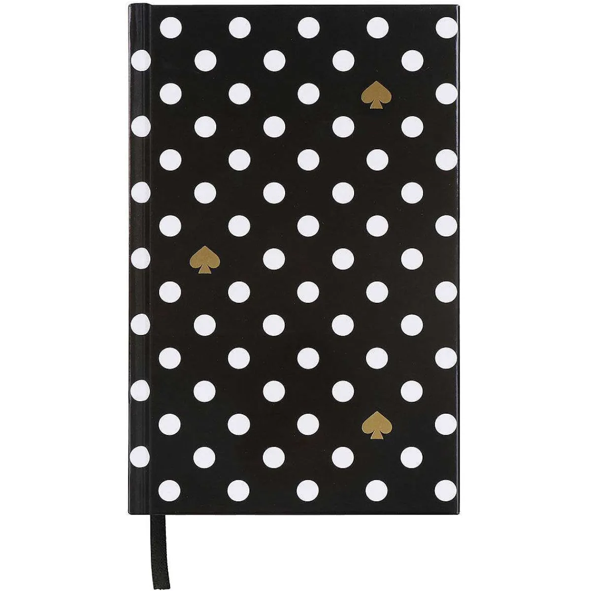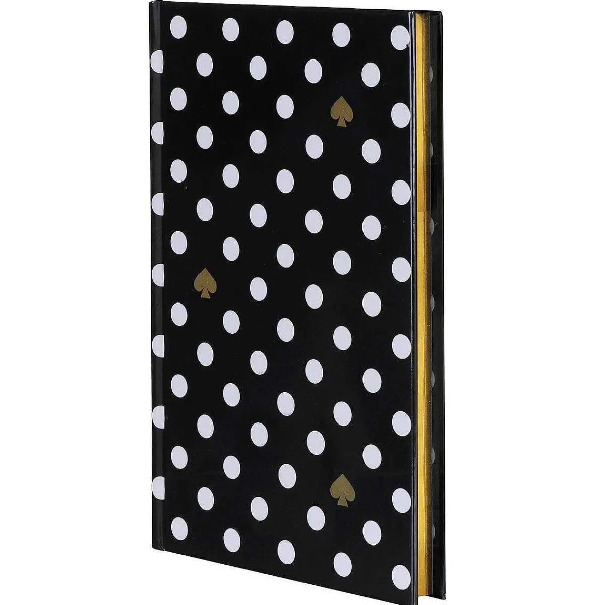 Designed With A Black Finish Featuring White Polka Dots And Gold Kate Spade Emblems Covering The Notepad. The Pages Are Outlined In Gold Giving The Pages A Shimmering Effect, Completed With A Fabric Ribbon Bookmark To Make Sure You Never Lose Your Page.