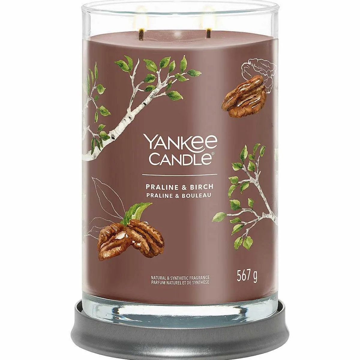 Enjoy The Luxurious Aroma Of Praline And Birch With This Wonderful Signature Large Tumbler From Yankee Candle. This Candle Comes In A Sleek Glass Vessel With Straight Sides That Complement The Fragrance And Will Look Wonderful In Any Home Décor Theme. The Candle Comes With A Silver Metal Lid That Doubles As A Stand To Sit Your Candle On To Protect Your Surfaces. This Fragrance Is Unique Mix Of Woody And Sweet. Spicy, Warm Praline Notes Make This Candle The Perfect Treat Enjoyed In Front Of A Birch Log Fire.