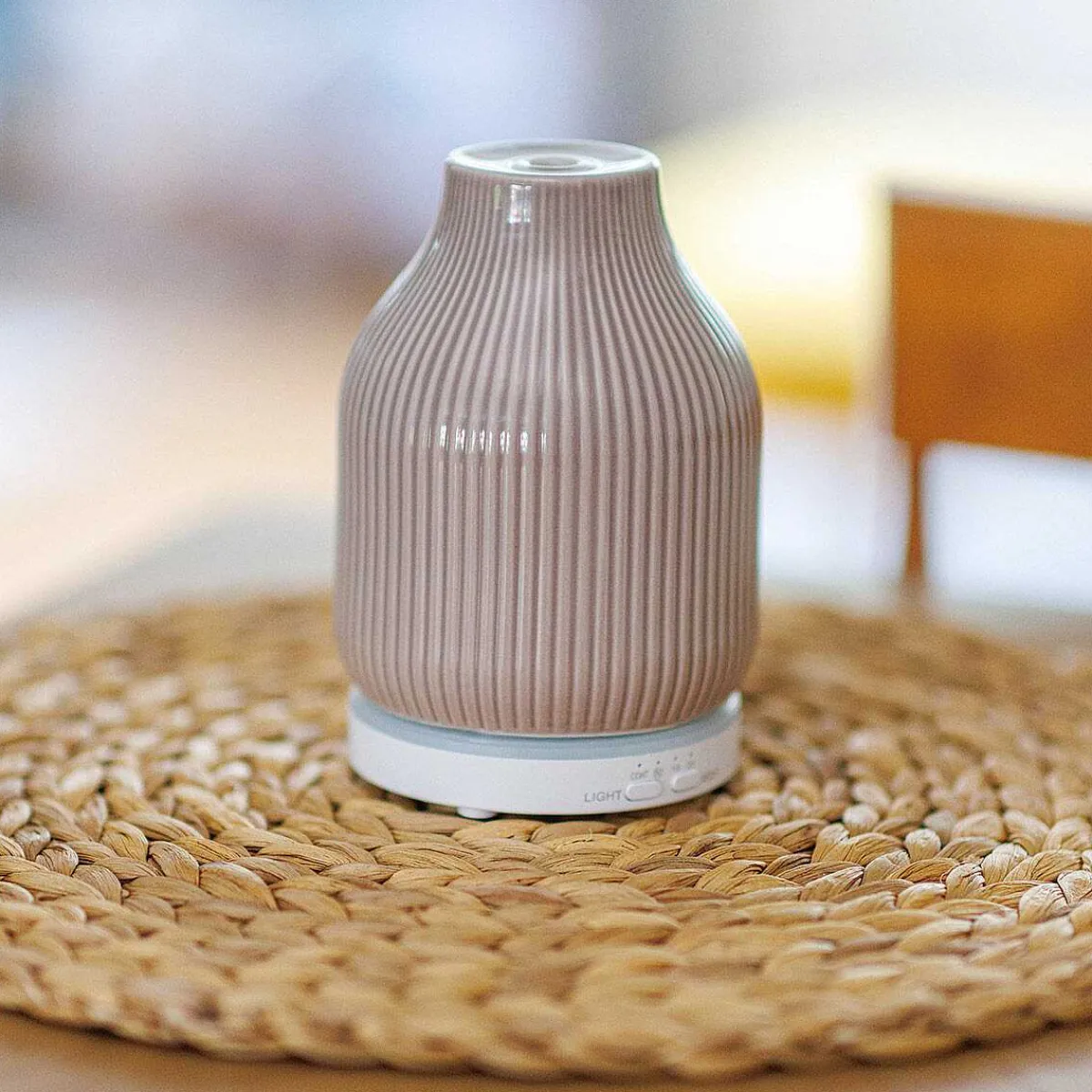 This Sleek And Modern Ornamental Piece Has A Curvaceous Taupe-Coloured Ceramic Exterior With A Ribbed Surface, And It Looks Fabulous On Your Shelf Or Mantelpiece, Complementing Any Home Décor Scheme. The Led Light At The Base Emits A Subtle Glow, Adding A Warm Ambience To Any Room.