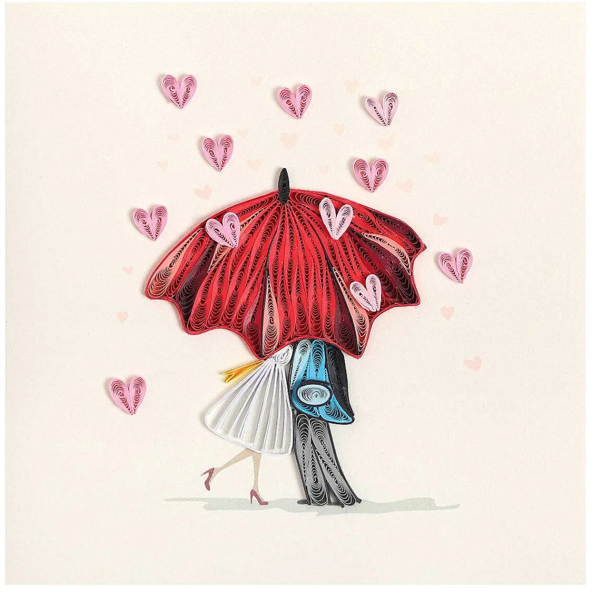 An Incredible Feat Of Paper Engineering, This Gorgeous 3D Card Looks Fabulous From Every Angle. It Features Layers Of Quilled Card That Has Been Meticulously Rolled By Hand To Create An Intricately Patterned Scene Of A Loving Couple Cuddling Together Under A Red Umbrella, As Love Hearts Rain Down From The Sky Above.
