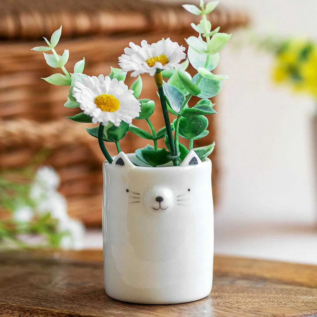 This Item Is Decorated With A Cats Face And Two Small Pointed Ears. With Small Black Eyes And Nose He Is Perfect For Any Small Succulent Aloe Or Cactus In Your Home.