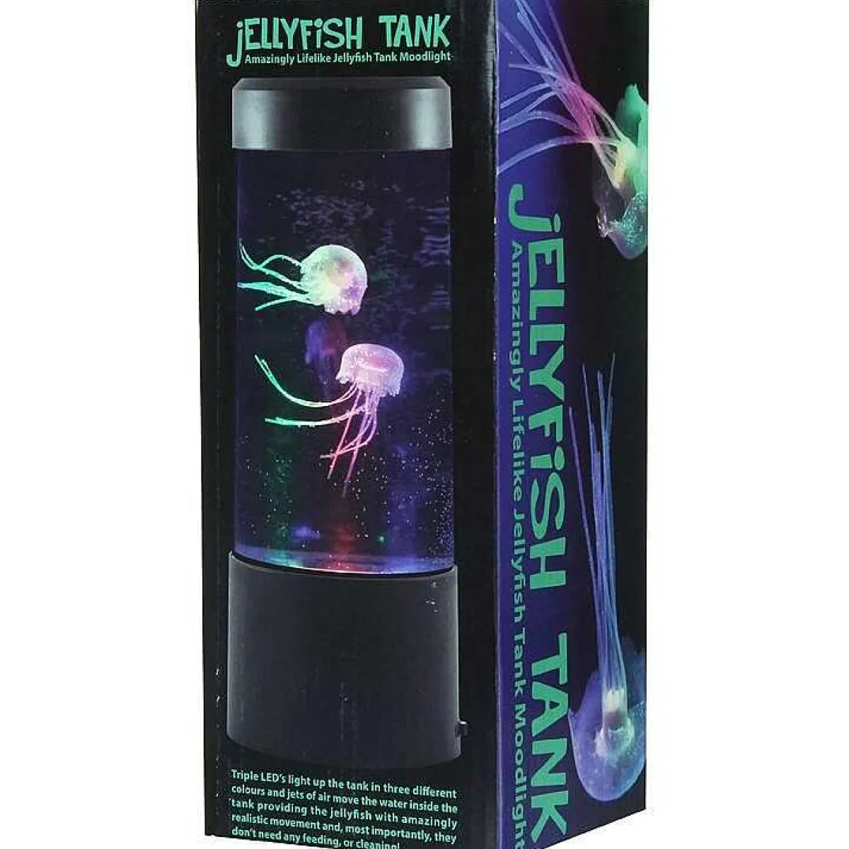 The Plastic Tank Is Fillable And Accessible Using A Small Hole At The Top Which Is Tightly Sealed Using A Plug. Inside, Two Small Silicone Jellyfish Measuring Around 5Cm In Body Length Float And Swim With The Aid Of Jets Of Air Moving The Water Giving Them Amazingly Realistic Movements. To Power The Jets And The Led Lights Which Are Housed Within The Base 3 X Aa Batteries (Not Included) Are Required.