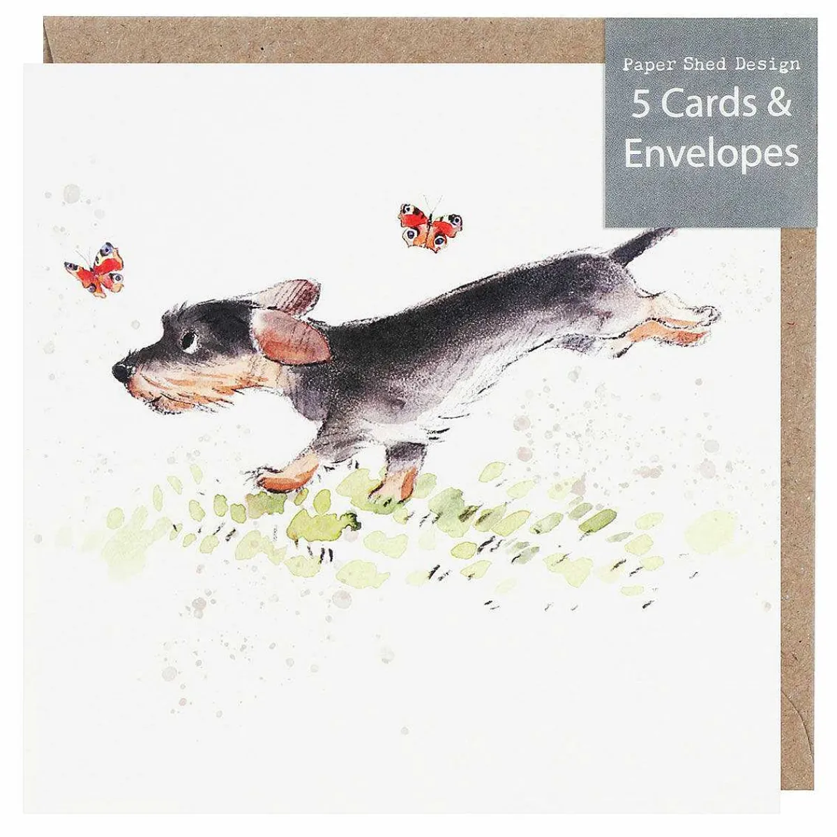Paper Shed Designs Running Dog With Butterflies Pack Of 5 Notecards