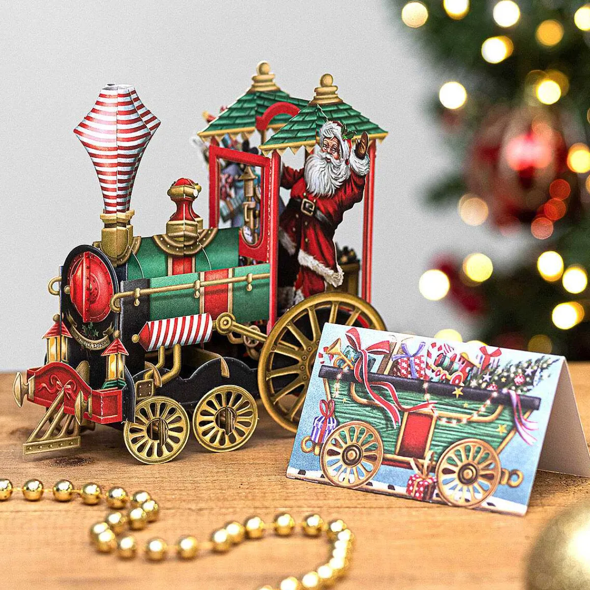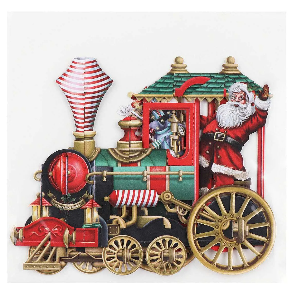 Precision Cut By Laser, This Santa’S Train Card Is An Incredible Feat Of Paper Engineering. Folded Flat, It Fits Perfectly Into The Envelope Provided And Can Be Sent At The Uk Letter Rate For Postage. Opened Up, It Reveals Multiple Layers Of Artistic Detail, Creating An Amazing Adornment For A Mantelpiece Or Shelf With No Assembly Required.