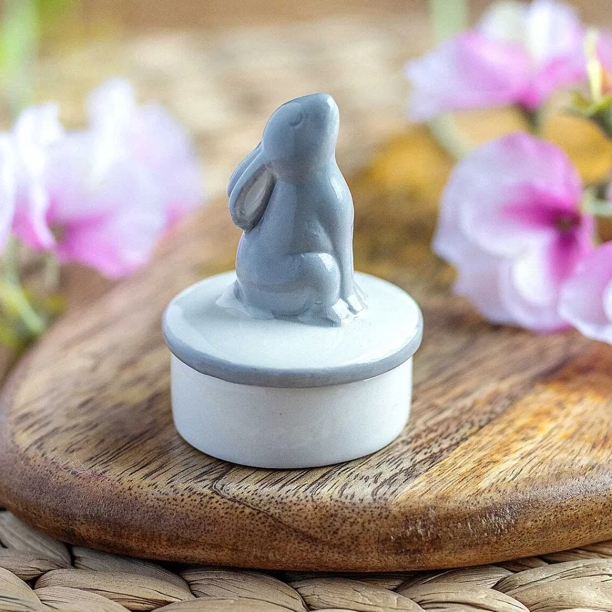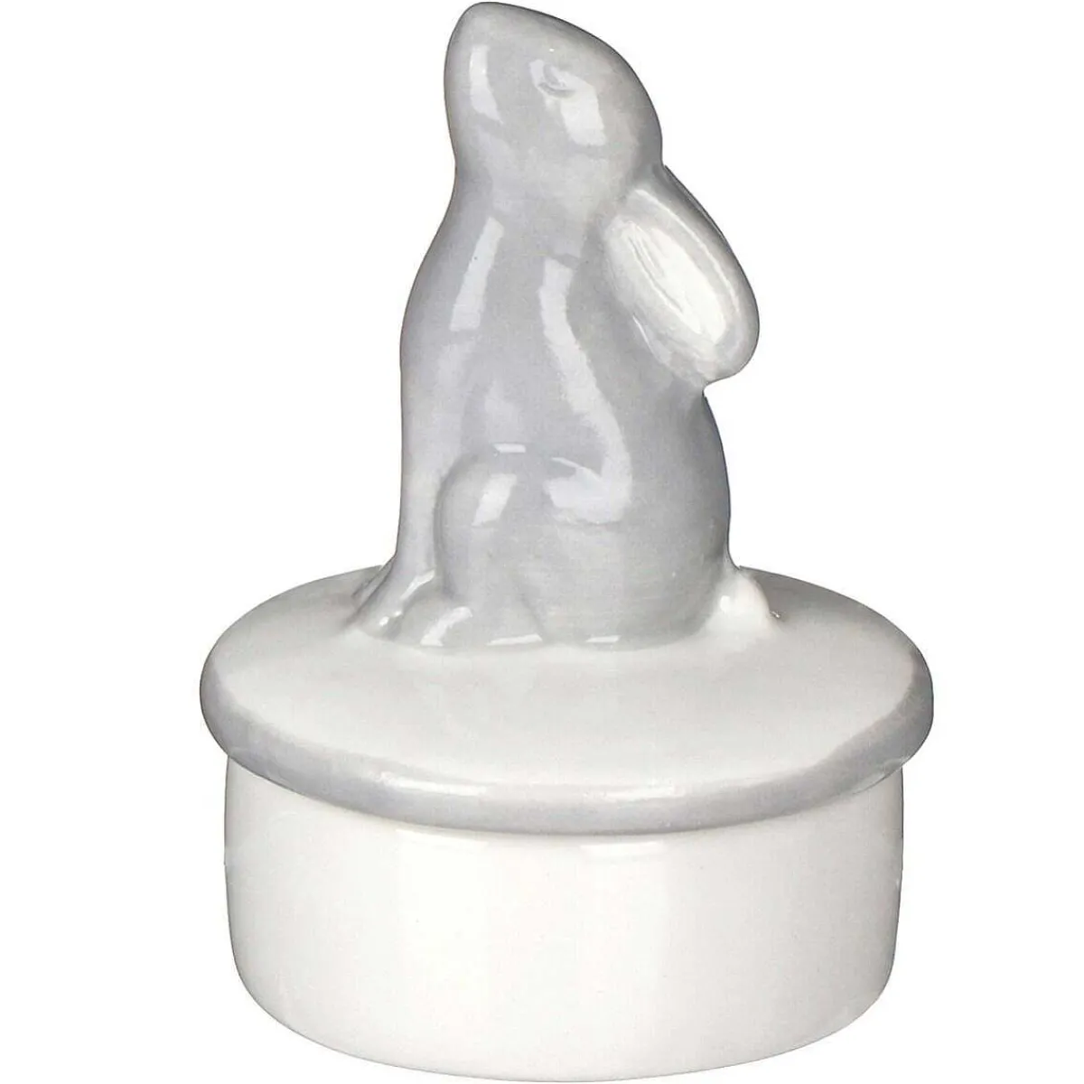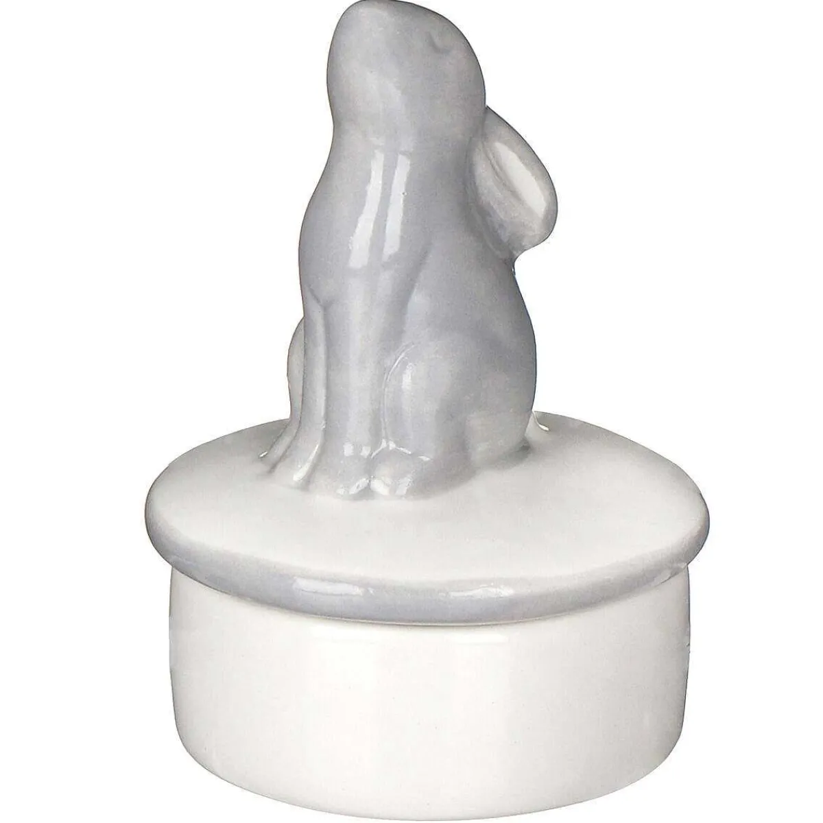 Made From Cream And Grey Porcelain With A Smooth Finish, This Adorable Little Hare Sits Upon The Lid With His Head Held High!