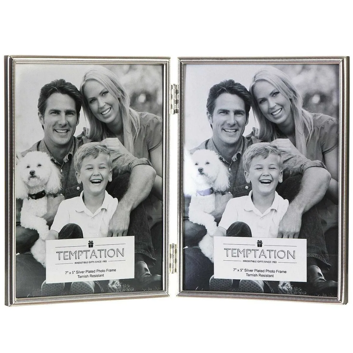 This Double Photo Frame From Temptation Gifts Is A Wonderful Way To Display Two Of Your Favourite Photographs For All Your Guests To Admire. This Classy Freestanding Narrow Silver-Plated Frame Has Polished Silver Edging And Makes A Statement In Any Home.