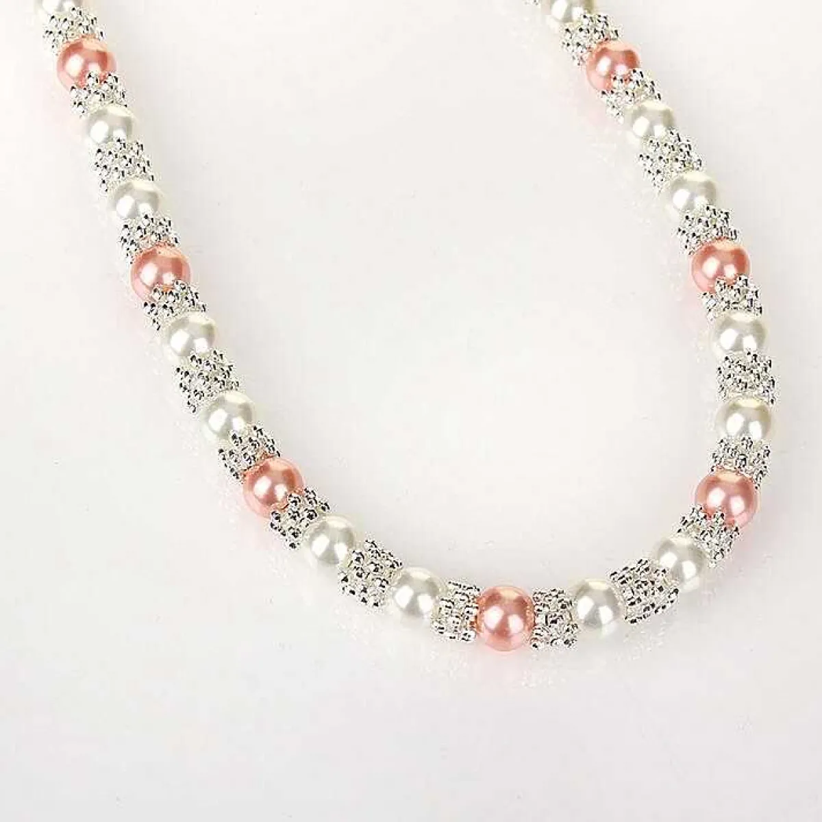 Equilibrium Silver Plated Pink Pearl Lace Necklace