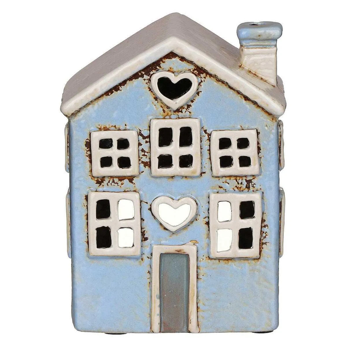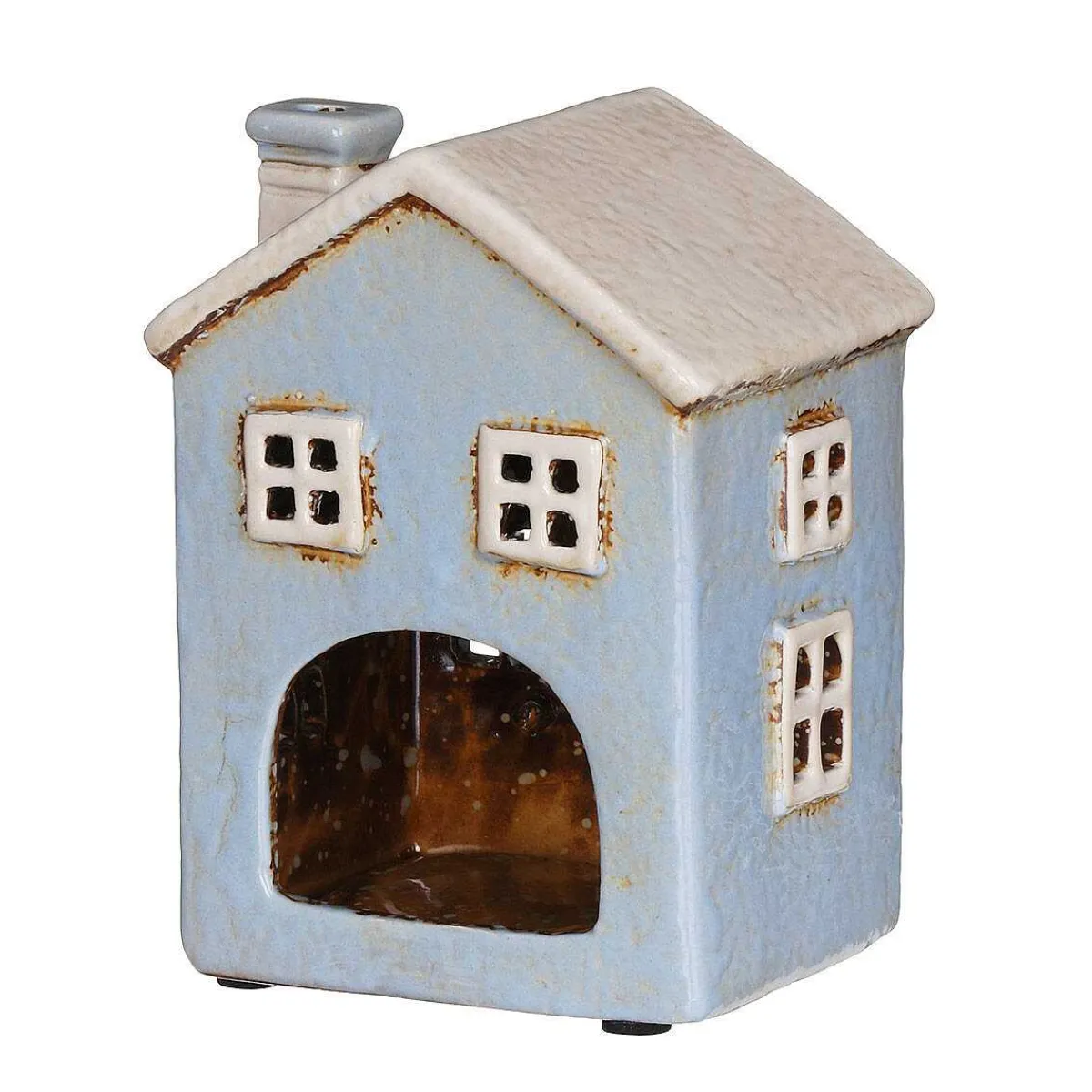 Featuring A Rustic House With A Blue And Cream Glaze, This Dainty Tealight Holder Will Look Lovely When Displayed On A Shelf Or Windowsill. Place A Tealight Of Your Choice Inside The Rear Of The House And Watch The Glow From The Flame Light Up Behind The Windows Of The House.