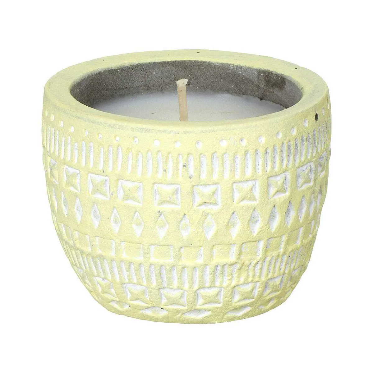 This Beautiful, Patterned Candle Features A Rough Concrete Exterior Which Is Etched And Painted In A Yellow Colour, Complete With A Wooden Lid. Once You Have Finished With Your Candle The Concrete Pot Is Perfect For Reusing For Succulents, Stationery Or For Any Small Trinkets! This Delightful Candle Will Look Stunning On Your Shelf, Mantlepiece Or Table. A Paddywax Sonora Candle Makes The Perfect Present For A Friend Or Relative.