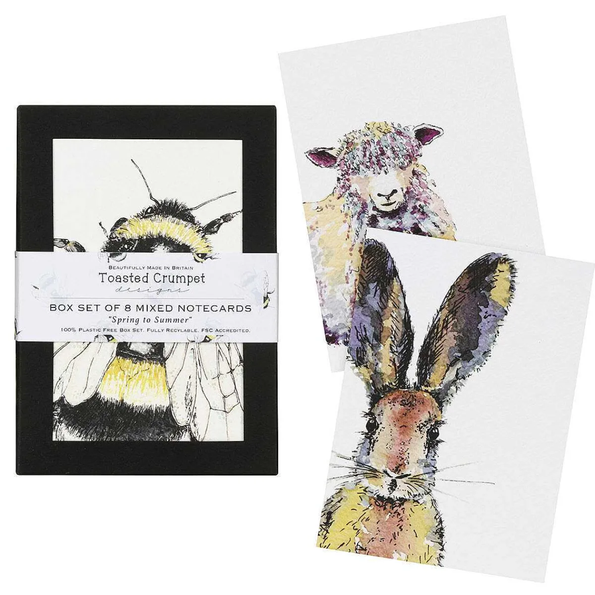 This Charming Assortment Of Notecards From Toasted Crumpet Features 8 Different Watercolour Designs Including A Bee, Butterfly, Magnolia, Hare, Sheep, Goose, Hydrangea & Bluetit. Every Card Is Blank Inside, So It Is Perfect For Sending Birthdays Best Wishes, Reminders, And Thoughtful Messages To Friends And Family.