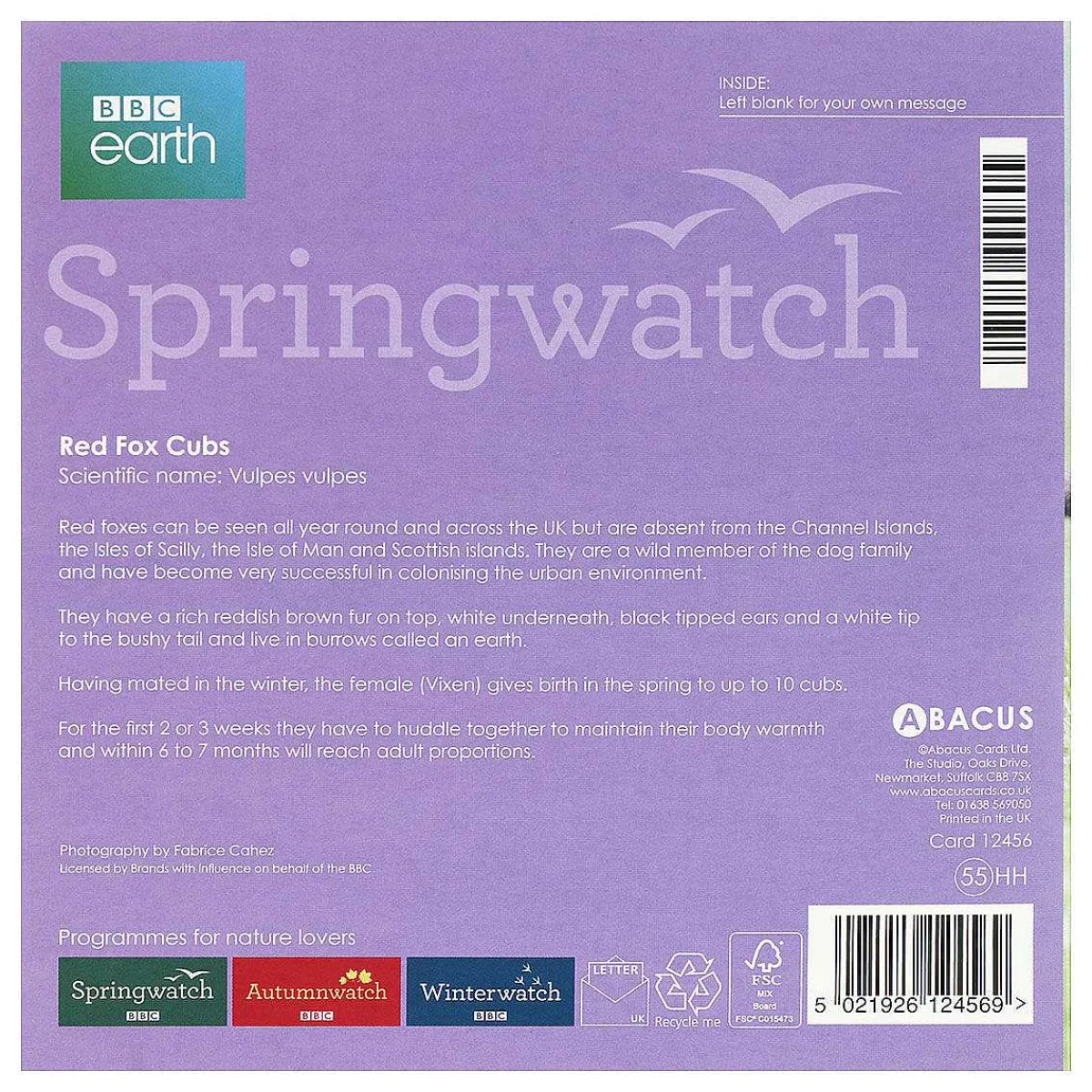 Abacus Cards Is One Of The Leading Greeting Card Publishers In The Uk. Priding Themselves On An Imaginative And Diverse Range Of Cards Made To A High Standard. They Started In 1991 As Mr Fothergill Seeds And Purchasing Art-Led Greetings Card Publisher Clare Maddicott Publications. Abacus Cards Have An Extensive Portfolio Of Over 1000 Designs Thanks To A Team Of Creatives In House And Freelance, Photographers And Illustrators Catering For Every Occasion. Including Ranges For Bbc Programmes; Country File, Gardeners World And Springwatch.