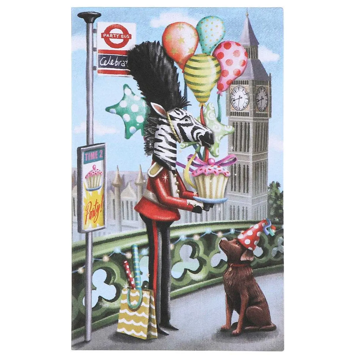 The Popup 3D Card Is Beautifully Designed With Laser Cut, Intricate Details. It Depicts An Iconic Red Double Decker Bus Adorned With Bunting, The Perfect Party Bus. With Bus Is Filled With Animals Dressed As Royal Guards, Police And The King Himself. There Is Even A Large Birthday Cake And A Bundle Of Colourful Shaped Balloons! The Colours And Details Of The Beautiful Design Combined With The Spinning Wheels Of The Bus Really Brings The Design To Life!