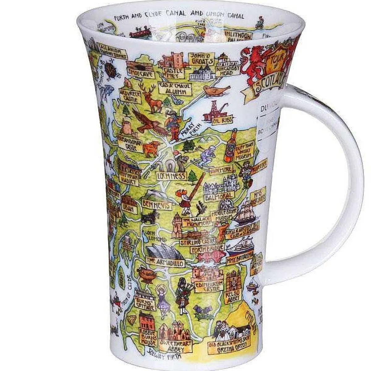 From The Range Of Informative Mugs Illustrated By Caroline Dadd For Dunoon, That Will Educate And Astound You With Unusual Facts And Figures, This Mug Takes You On An Illustrated Tour Of Bonnie Scotland. A Hand-Drawn Map Covers The Mug, Featuring Banners Proclaiming Place-Names, Accompanied By Thumbnail Cartoons Of Associated Images. Nessie Appears As A Prehistoric Reptile Wearing A Tam O’Shanter Next To Loch Ness, A Skier Is Shown Beside Aviemore, The Blacksmith’S Shop Where So Many Couples Have Been Married Is Pictured At Gretna Green And, Of Course, A China Mug Is Depicted At Dunoon!