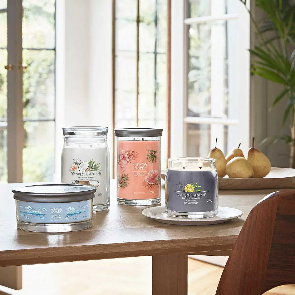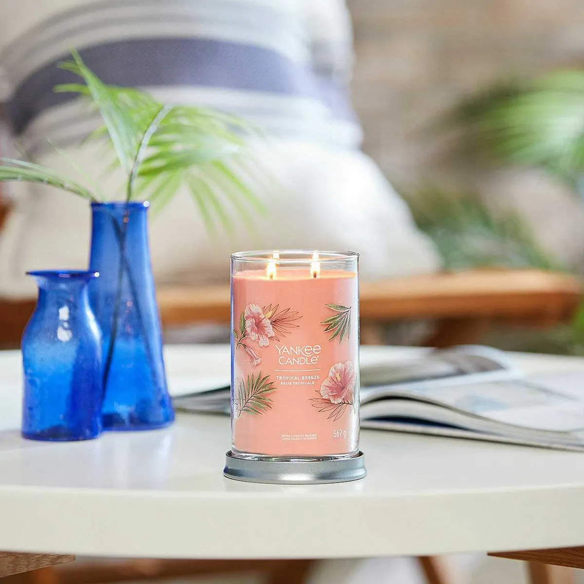 With A Blend Of Guava, Orange And Passionfruit, Fill You Home With A Tropical Breeze With This Gorgeous Tropical Breeze Aroma From Yankee Candle. This Signature Large Tumbler Is A Sleek Glass Vessel With Straight Sides That Complement The Fragrance And Will Look Wonderful In Any Home Décor Theme, Perfect For Any Home. The Candle Comes With A Silver Metal Lid That Doubles As A Stand To Sit Your Candle On To Protect Your Surfaces. This Refreshing Fragrance Perfectly Captures The Feeling Of Relaxing In The Sun On A Tropical Island.