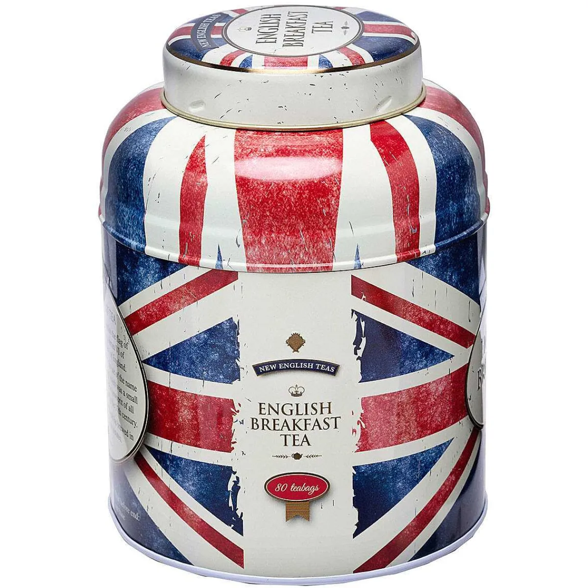 New English Teas Union Jack Round Tea Caddy With 80 English Breakfast Tea Bags