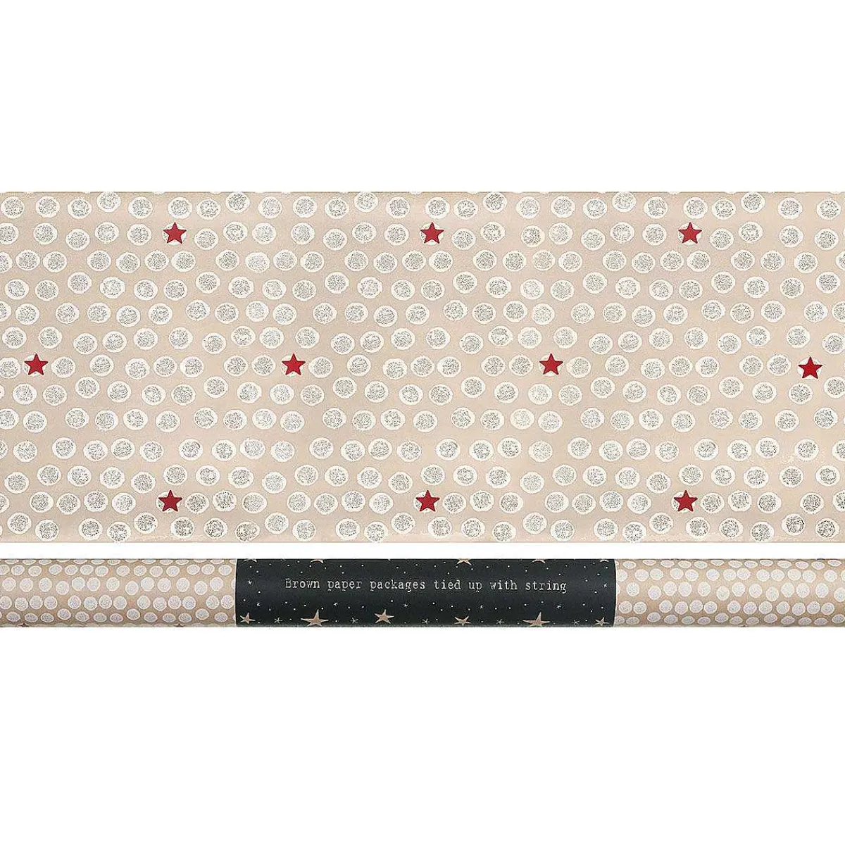 East Of India White Dots & Red Stars Roll Of Kraft Paper