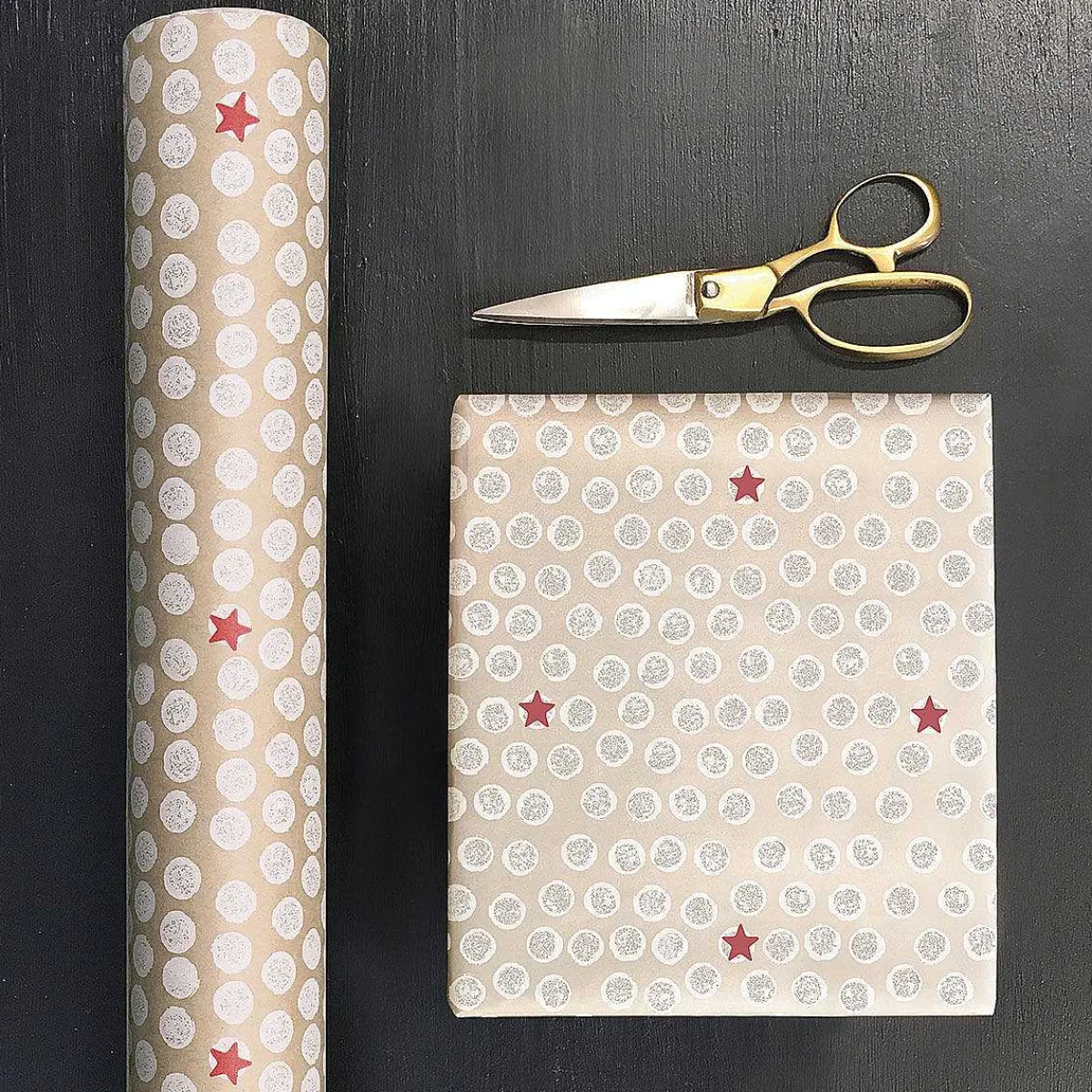 Wrap Your Gifts With Love This Christmas With This Stunning Wrapping Paper From East Of India. Featuring Hand Drawn Illustrations Of Dots Covering The Paper, With Some Dots Filled In With A Red Star, This Eco-Friendly Gift Wrap Is Brown In Colour Which Beautifully Contrasts The Pale Dots.