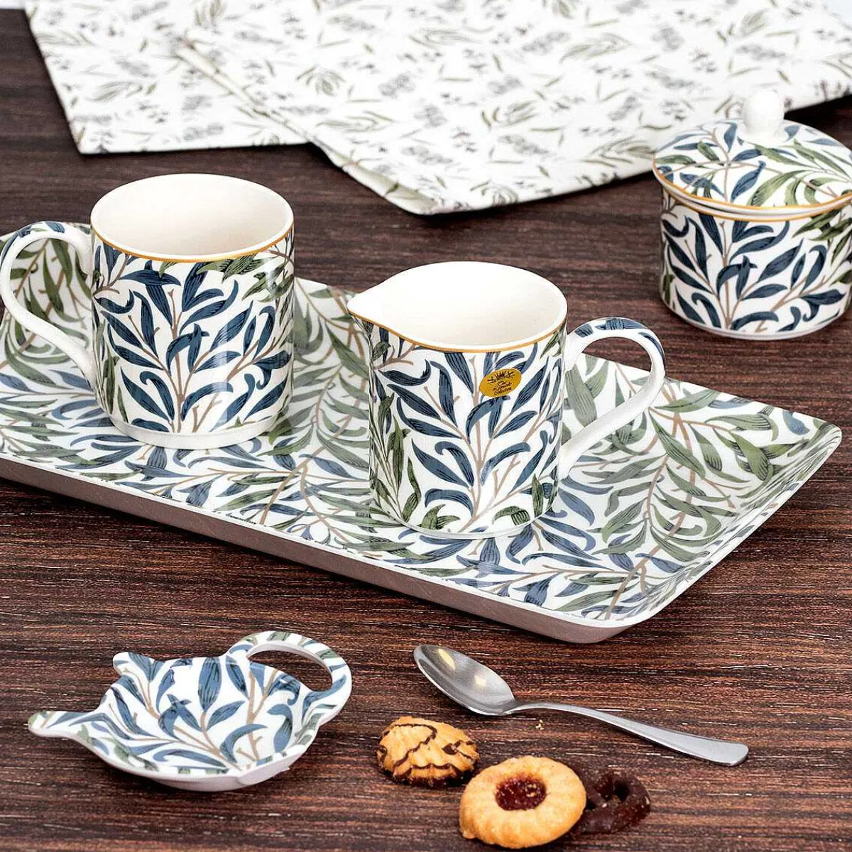 Made From Fine China With Sleek Straight Sides, This Jug Is Contemporary In Its Design. Featuring The Stunning Willow Bough Design In William Morris’ Distinctive Style, This Illustration Displays An Array Of Leaves In Soft Greens And Teals. The Pattern Is Set Across A Crisp White Background Which Allowing The Striking Design To Stand Out. This Mix Of Modern And Classic Design Continues Down The Handle And Is Finished With A Matte Gold Rim Which Adds A Touch Of Elegance.