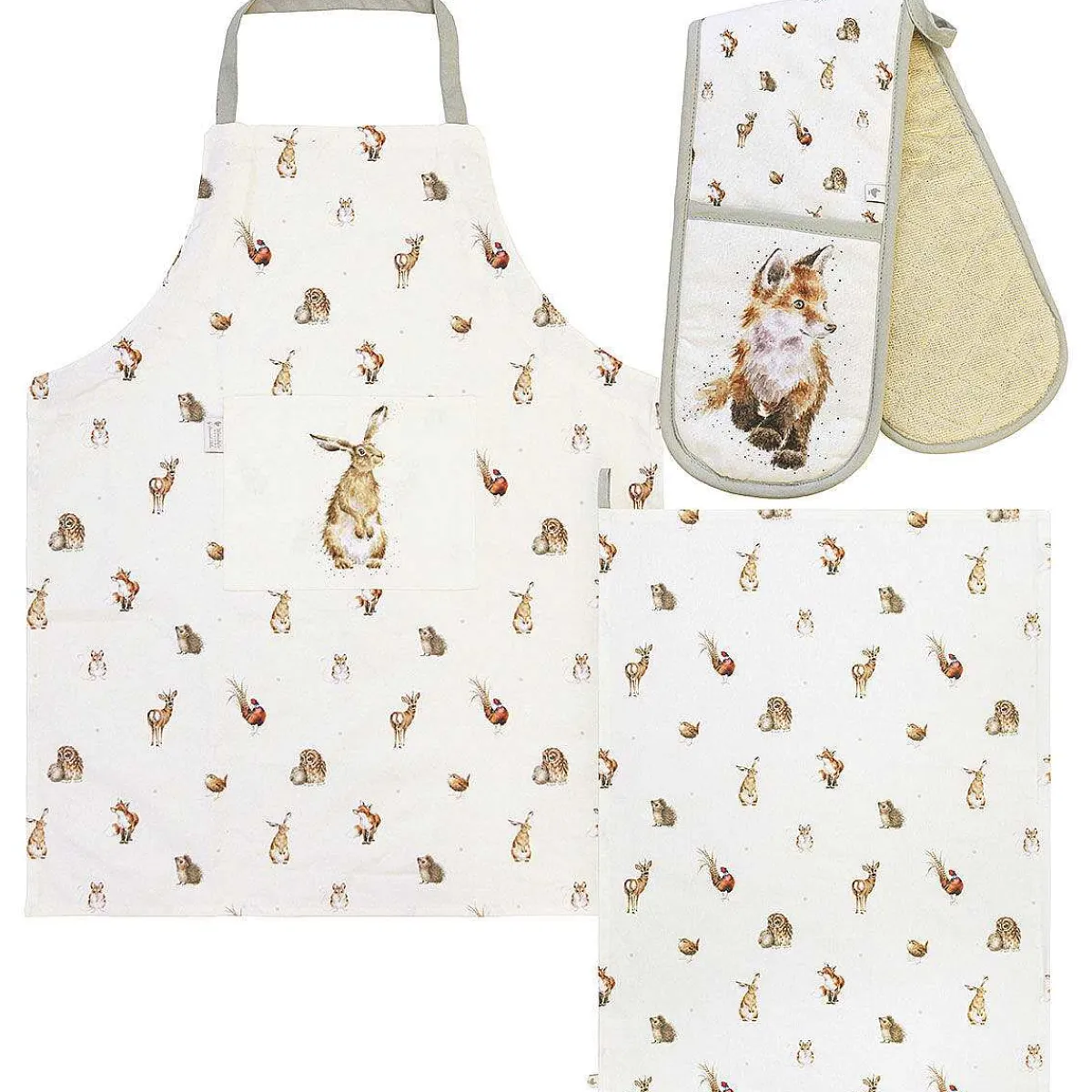 Wrendale Woodlanders Double Oven Glove, Tea Towel And Apron Set