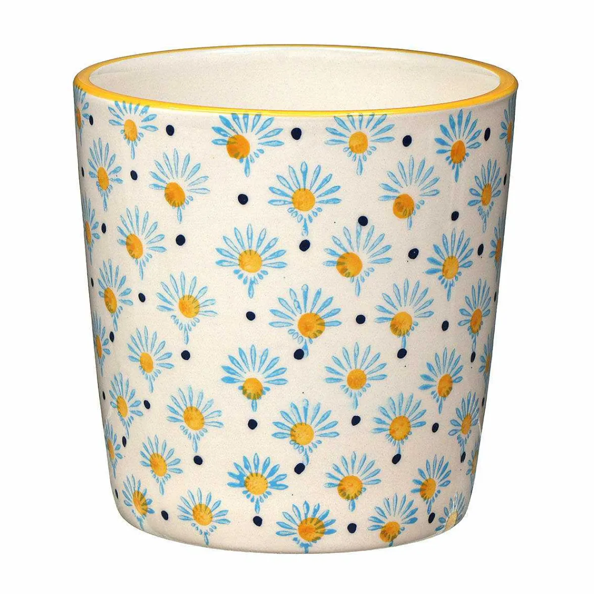 Made From Glazed Ceramics, This Plant Pot Is Embellished With A Contemporary Geometric Floral Pattern, Shaped With A Stylish Simplicity That Has An Artisan Feel.