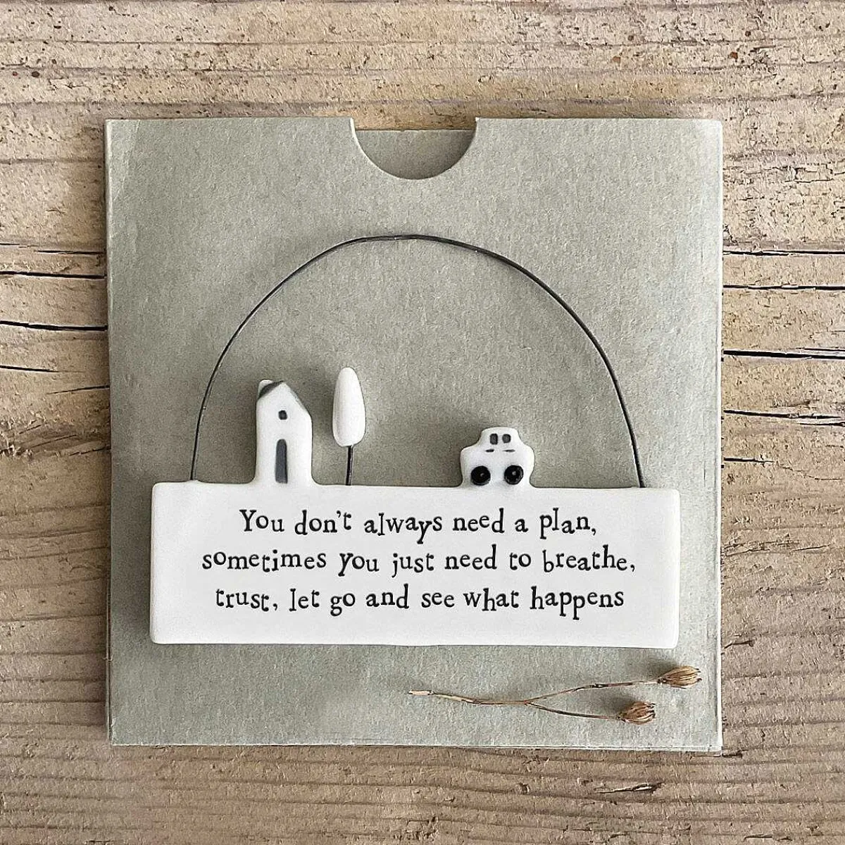 This Delicate Sign Features A Porcelain House, Car And Tree. Beneath The Scene There Is Text Which Reads ‘You Don’T Always Need A Plan, Sometimes You Just Need To Breathe, Trust, Let Go And See What Happens’ Written In The Classic East Of India Font. It Makes A Beautiful Sentiment For Your Loved One.